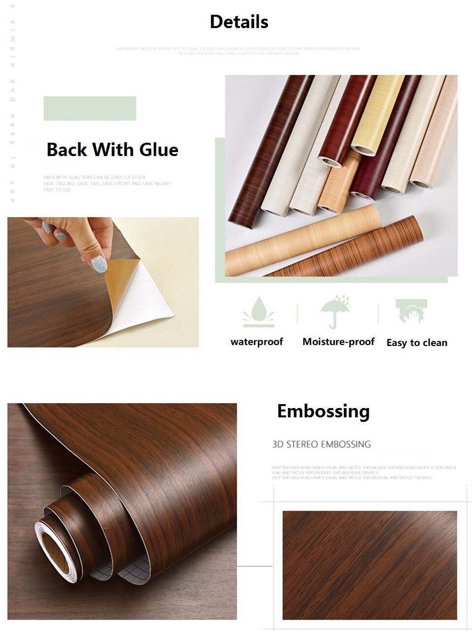 1M Waterproof Wood Vinyl Wallpaper Roll Self Adhesive Contact Paper Doors Cabinet Decorative Sticker