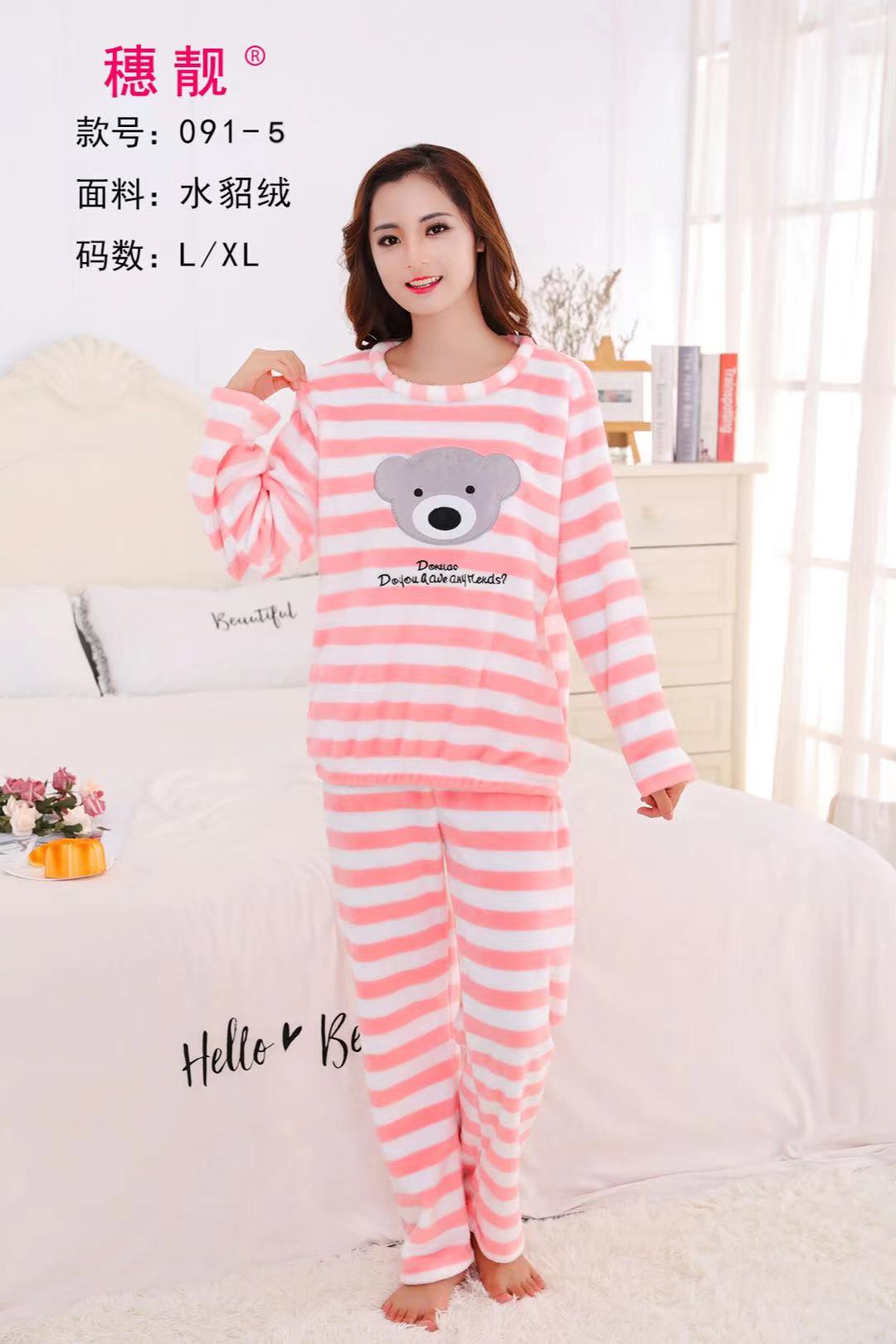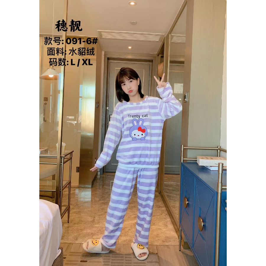 Be the first to review “2 Pcs/Set Tops + Warm Pant Extra Soft Fleece Polyester Women Pajama Sets Cartoon Flannel Sleepwear”
