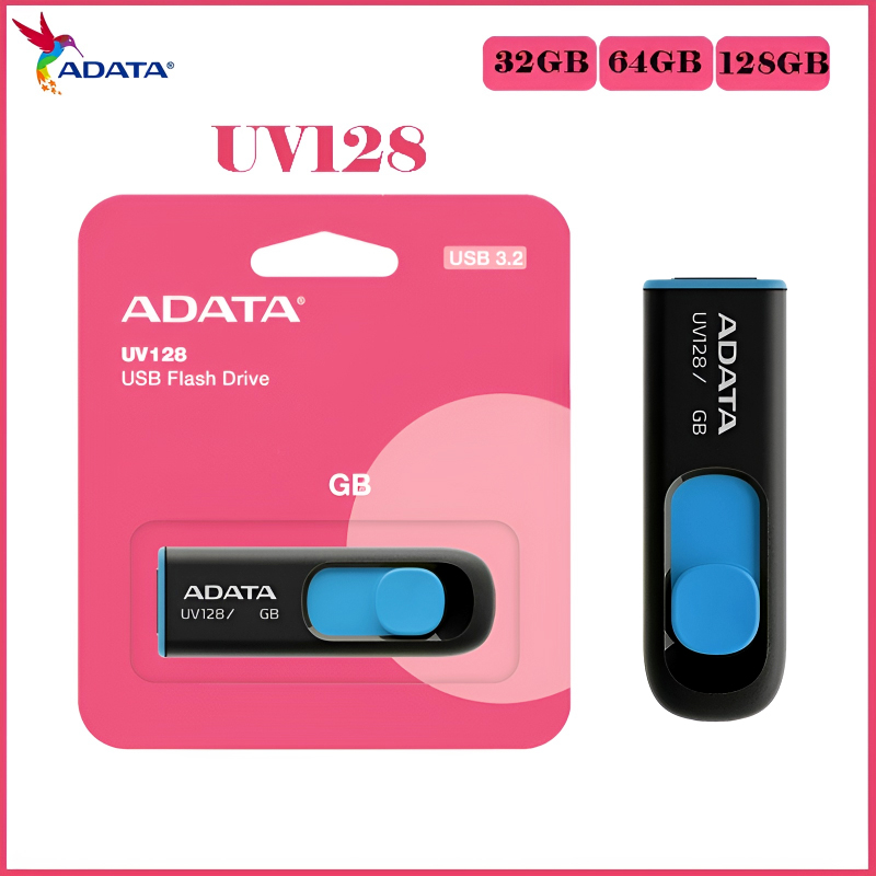 ADATA UV128 USB 3.2 Flash Drive – Sleek, Slide-Out Design | Available in 32GB, 64GB, and 128GB