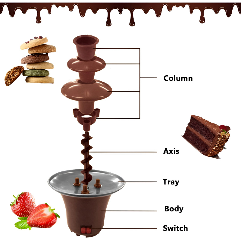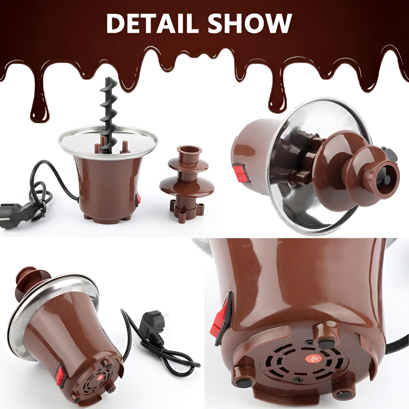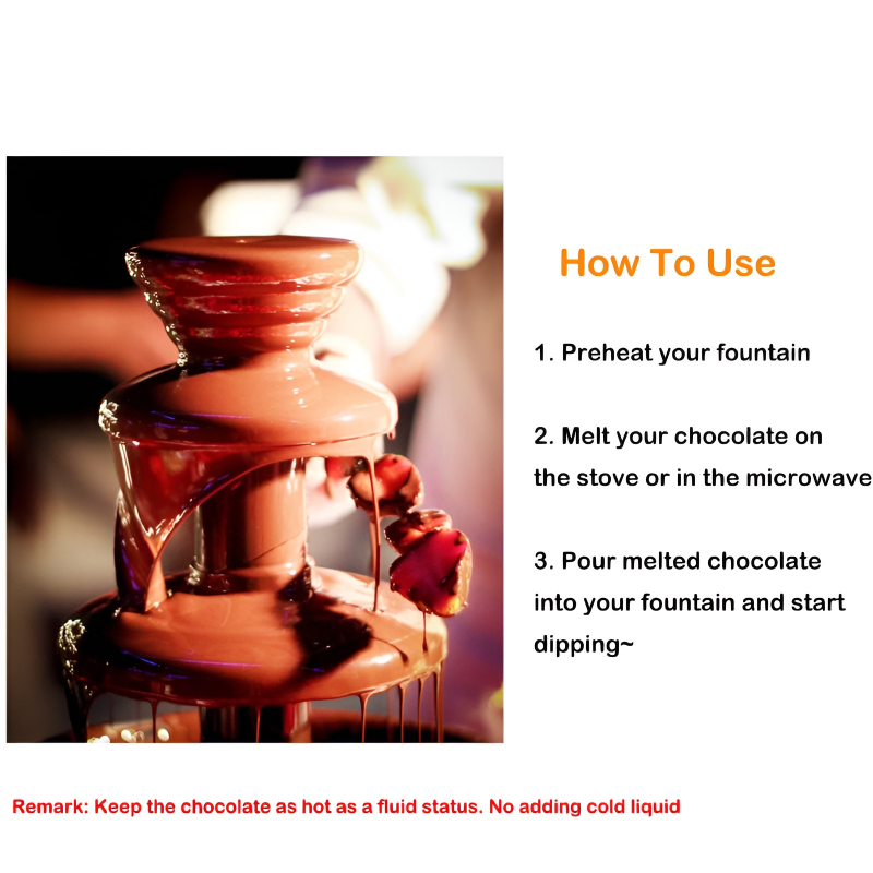 Introducing the BD-017 Electric 3-Tier Mini Chocolate Fondue Fountain, a delightful centerpiece for any gathering. Crafted from high-quality stainless steel 430 and durable ABS, this chocolate fountain is safe and environmentally friendly, ensuring a smooth and satisfying experience.