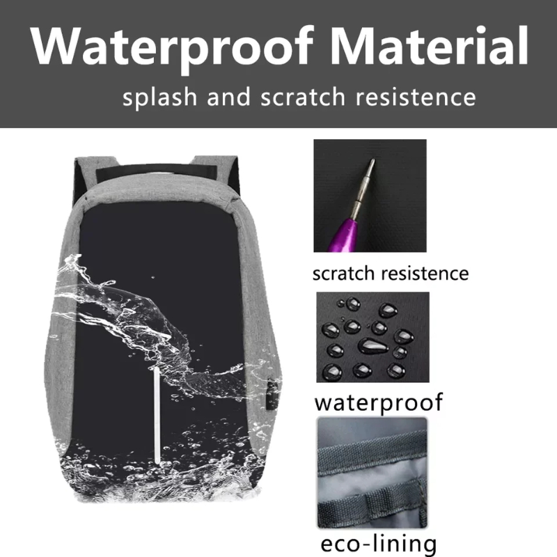 Anti Theft Backpack has a USB Charging Port and a data cable, you can connect your power bank and recharge mobile phones.