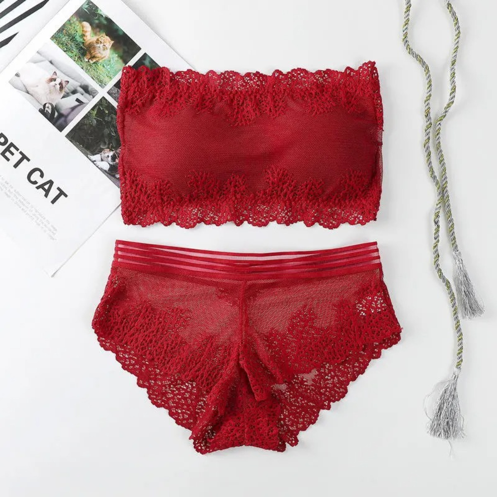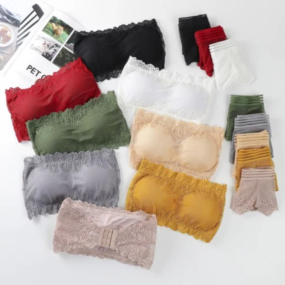 Breathable Sexy Strapless Laced Seamless Bra And Panty Luxury Set For Women