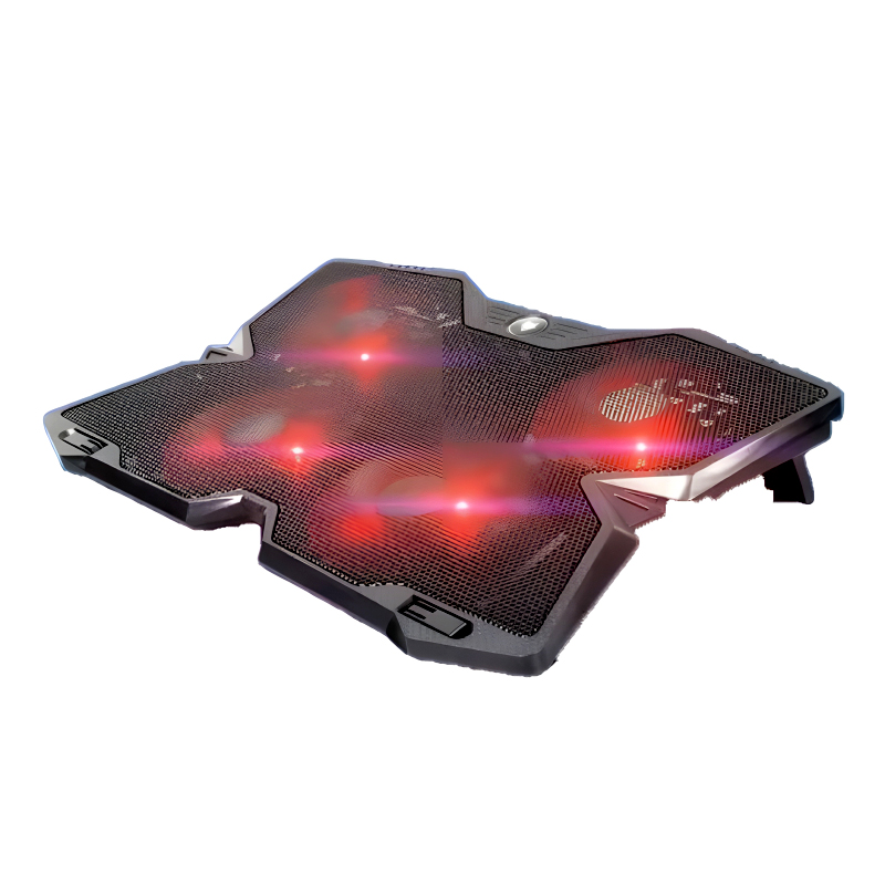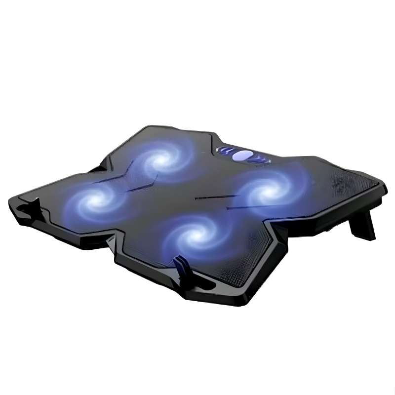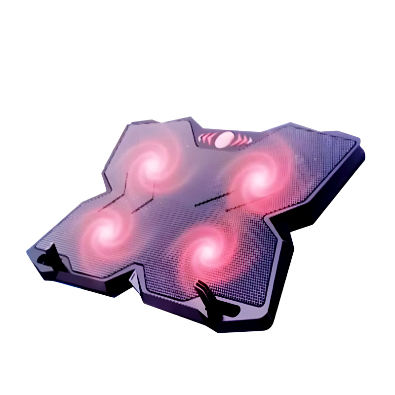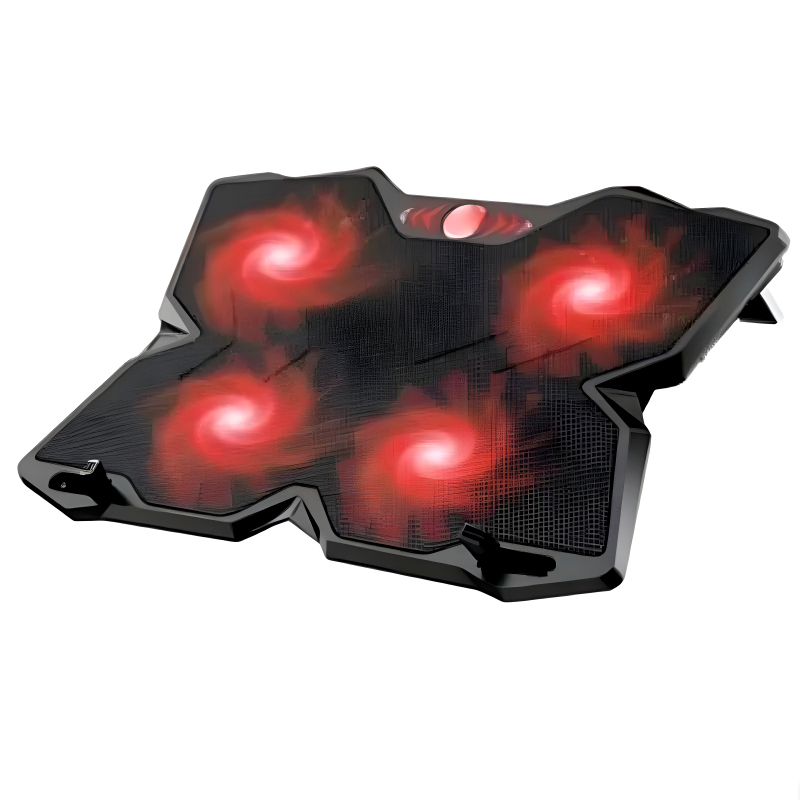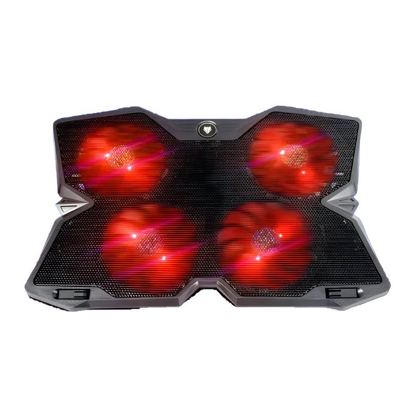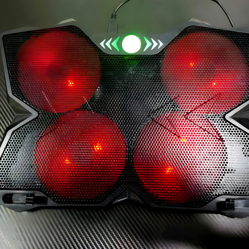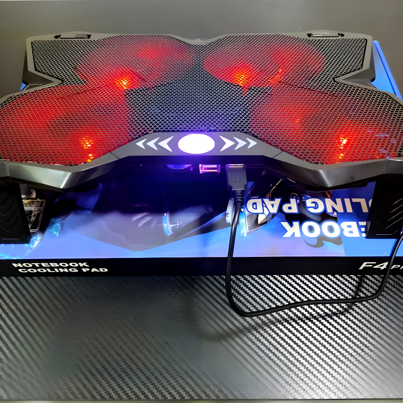 The F4 Plus Notebook Cooling Pad combines robust cooling performance with a sleek black design accented by vibrant streaks on its fan blades, catering specifically to hardcore gamers and intensive users alike.