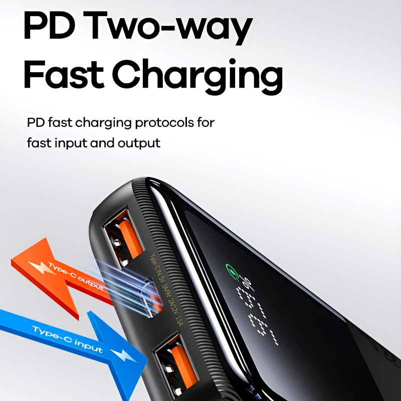 Two-Way Fast Charging: The Type-C port supports two-way fast charging with PD20W output, adding versatility and convenience to your charging experience.