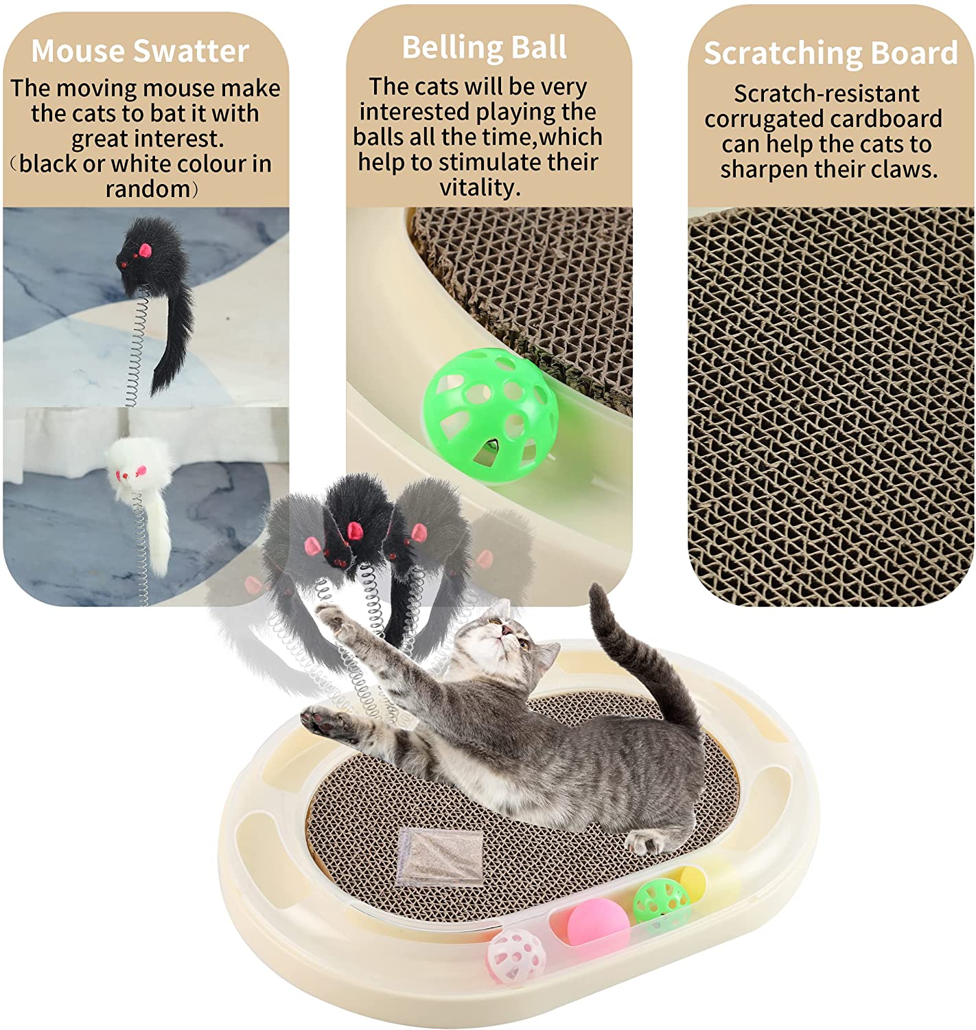 Easy to attract cat’s attention and keep your kitty entertained for hours. Avoid your cat to damage your furniture or floor.