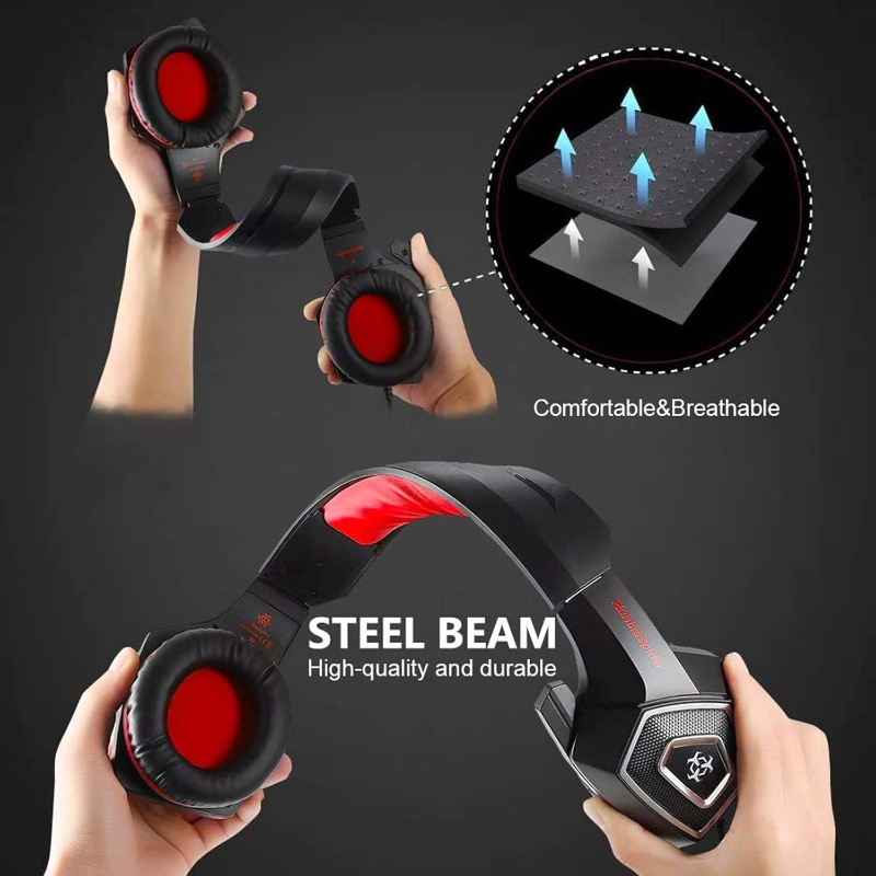 Designed for endurance, the headset combines soft PU ear cushions, an adjustable steel-reinforced headband, and breathable materials to keep you comfortable during long gaming sessions. Dynamic RGB lighting adds a futuristic aesthetic, automatically cycling through vibrant colors to match your gaming setup. With universal compatibility (PC, PS4/5, Xbox One, Switch via 3.5mm/USB) and convenient in-line volume and mic controls, the Hunter Spider V1 is the perfect blend of style, functionality, and comfort, making it an ideal choice for both competitive and casual gamers.