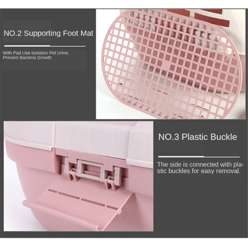Top with feeding bowl, mesh pad on the inside can be used with urine pad to prevent bacterial growth.