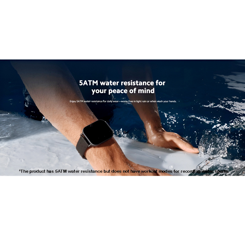 Its 5ATM water resistance ensures protection during rain or handwashing, while 200+ customizable watch faces let users adapt the watch to their personal style.
