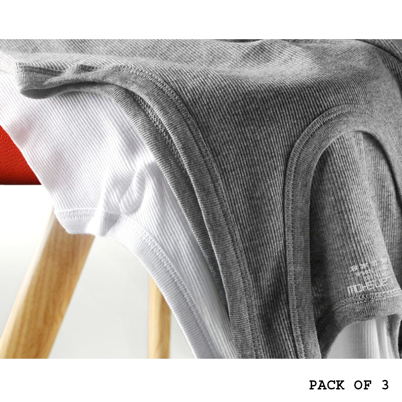 Set of 3 Men’s Athletic Vests – 100% Ribbed Cotton, Export Quality, High Standard, Premium Packaging