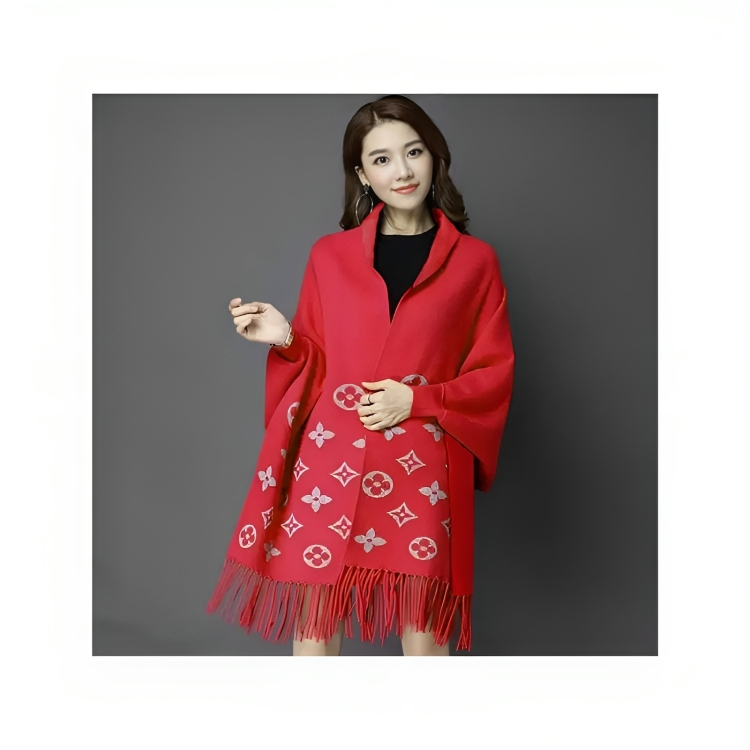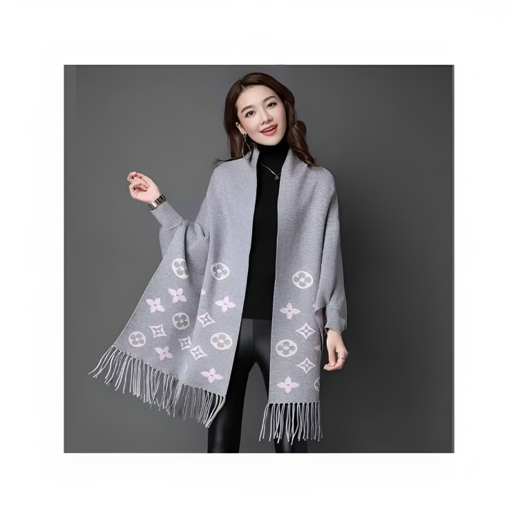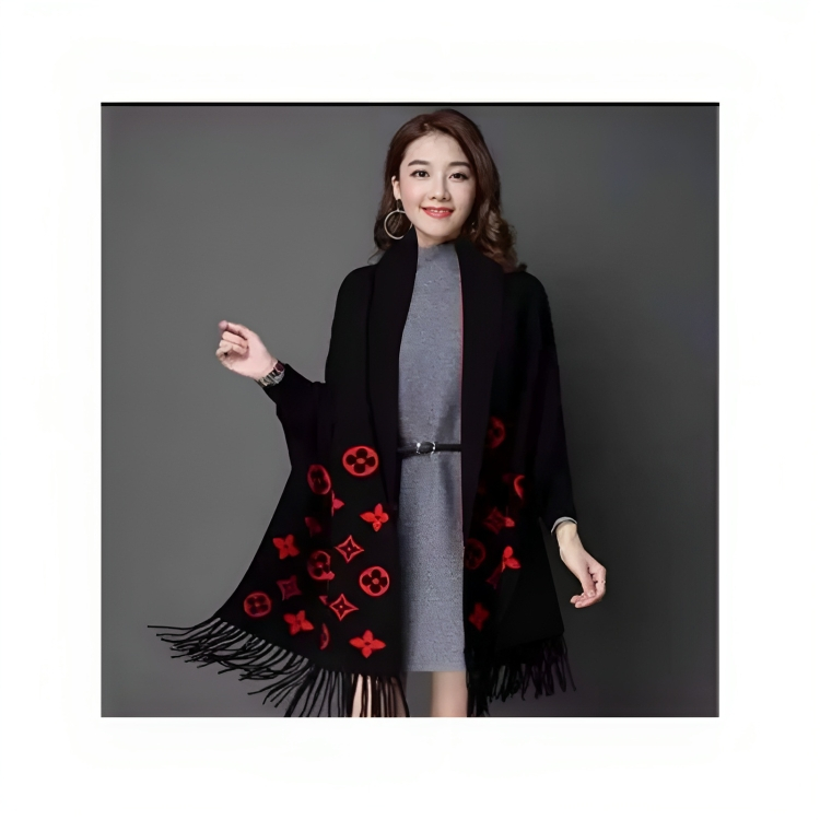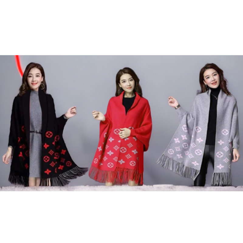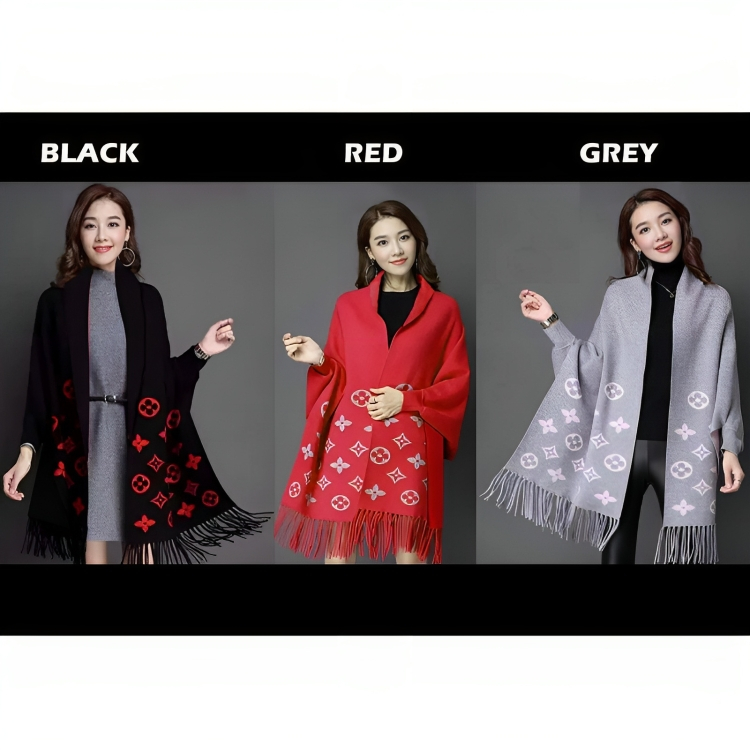 Introducing our Stylish Bat-Wing Printed Fleece Shawl – the epitome of winter fashion sophistication.