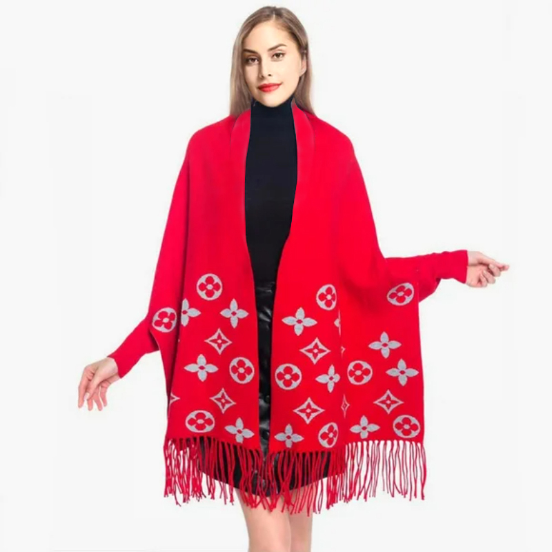 This exquisite poncho seamlessly combines comfort and style with its unique bat-wing design and eye-catching prints.