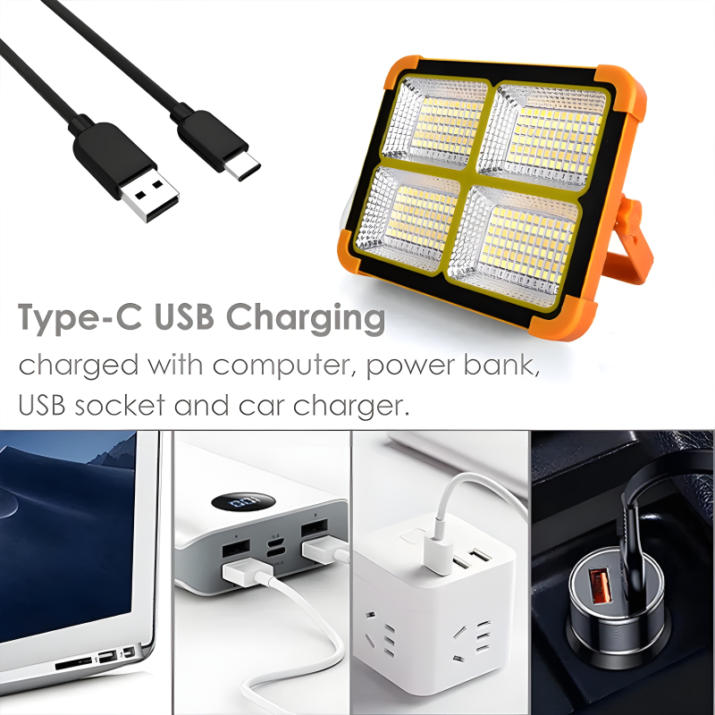 Illuminate your surroundings with high brightness and long-range lighting capability. The advanced High Power Irradiation system provides a handy outdoor solution with an extended illumination range. The built-in Type-C USB charging option transforms this solar light into an emergency mobile power source, compatible with computers, power banks, USB sockets, and car chargers.